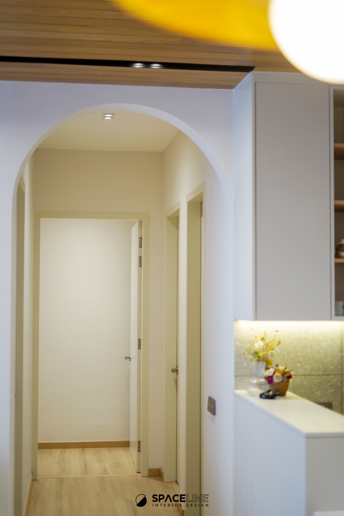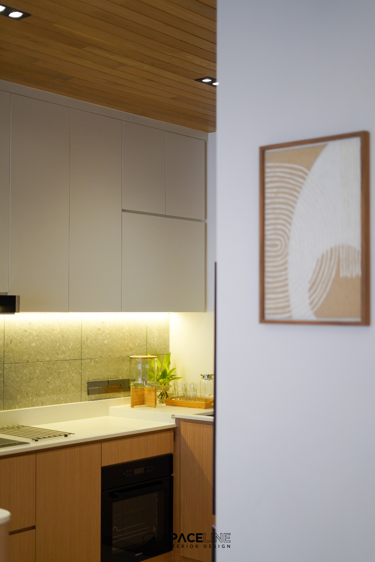 This condominium project at Eco Nest emphasizes a design philosophy built on light and warm wood tones to evoke a feeling of home and comfort throughout the apartment. The design excels in creating highly functional zones through integrated cabinetry and cohesive material use, all while maximizing visual space.