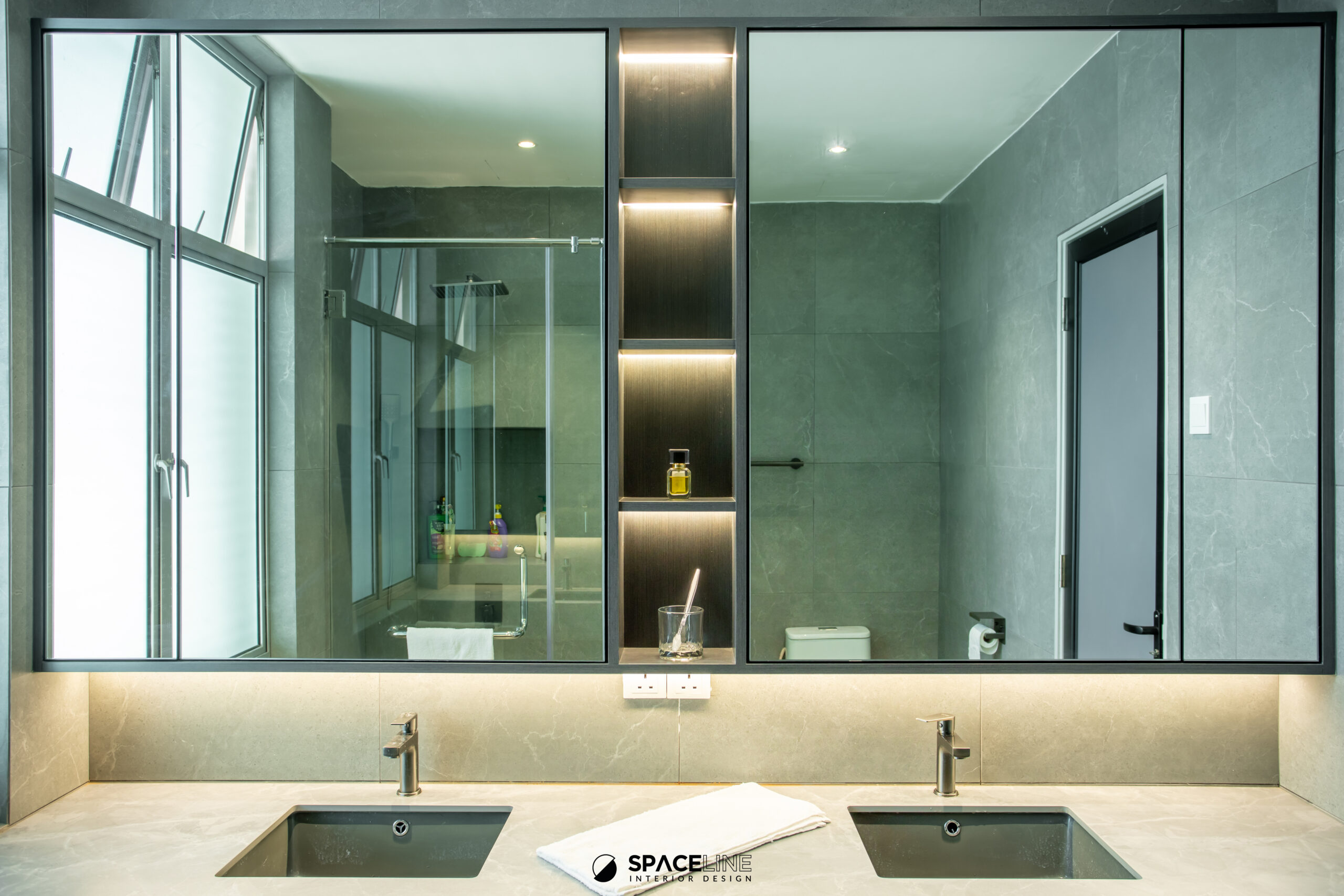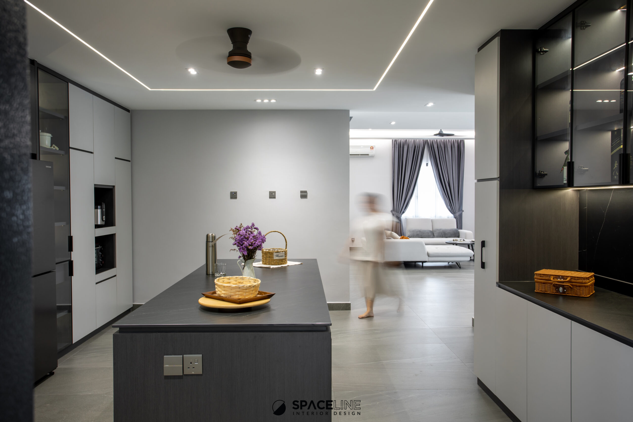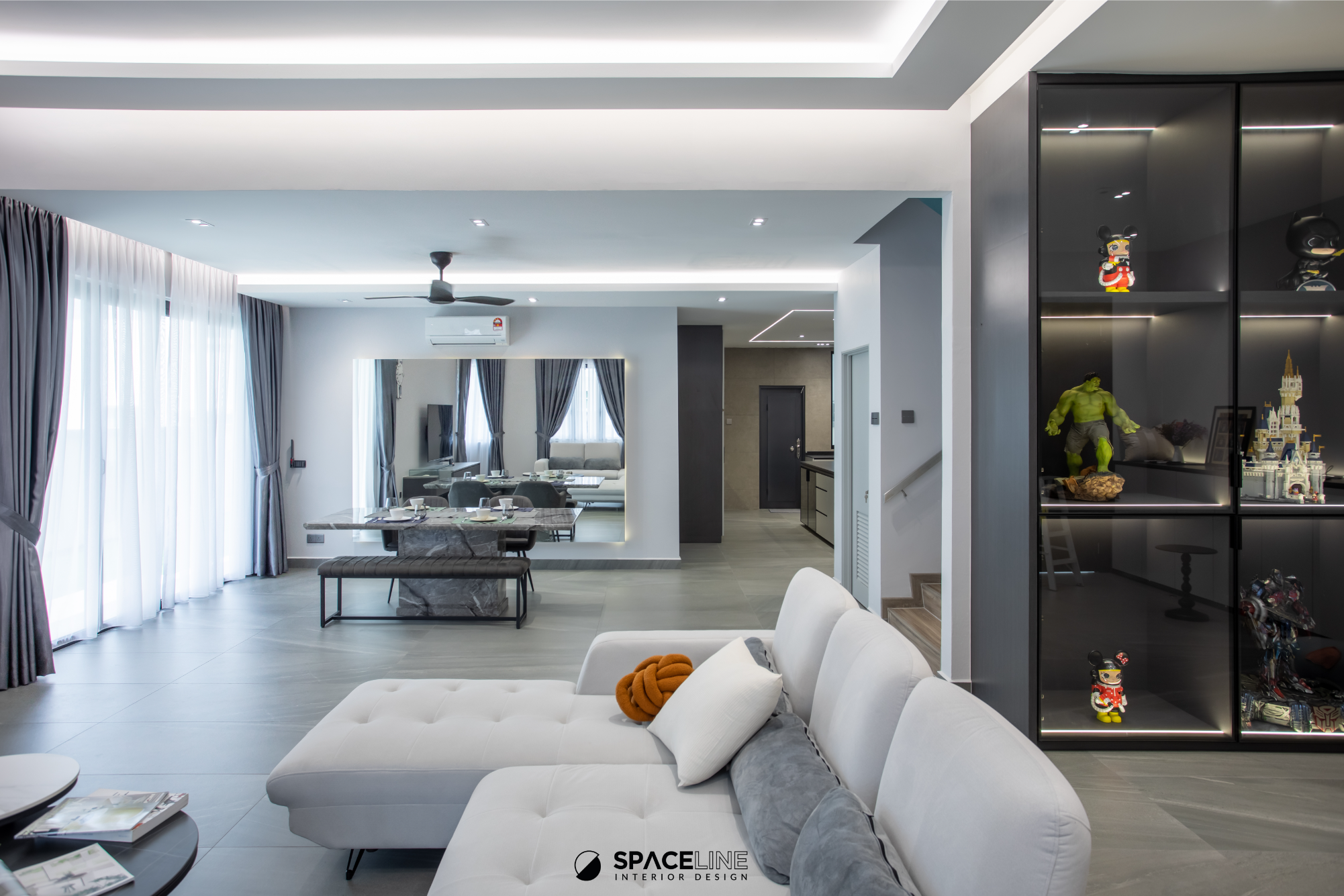This project in Kempas Utama showcases a sophisticated approach to modern minimalism, where clean, geometric design provides the perfect backdrop for the client’s unique personal collections. The design emphasizes symmetry, seamless transitions, and a cool, calming palette, proving that minimalist design can be deeply personal.