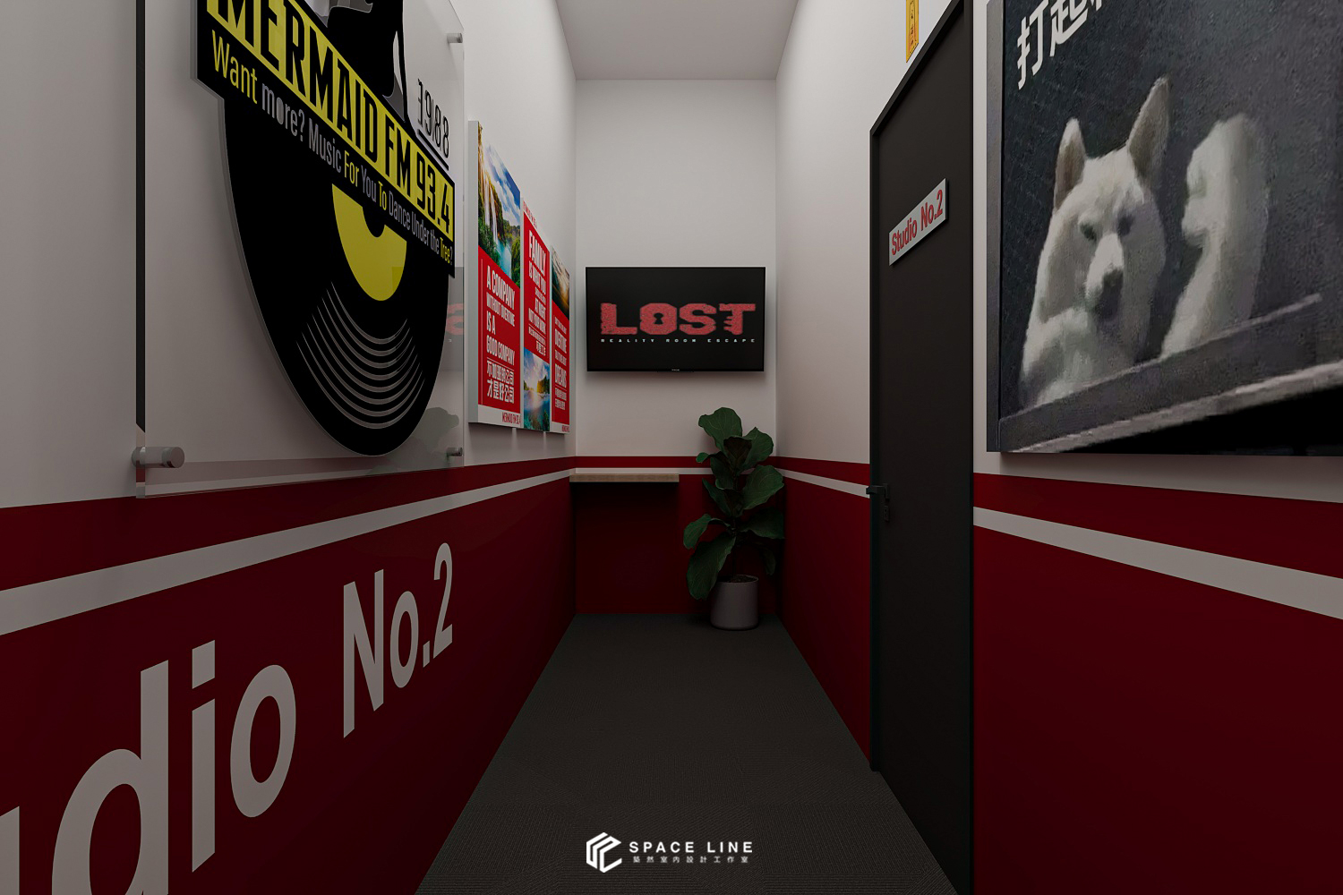 This escape game room, situated within a modern shoplot area, leverages the theme of daily life settings but immerses it in a powerful, red mysterious ambiance. The design uses bold color and dramatic contrast to create an energetic, stimulating, and highly theatrical gaming environment.