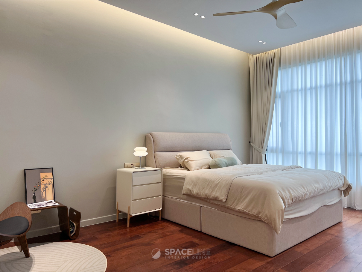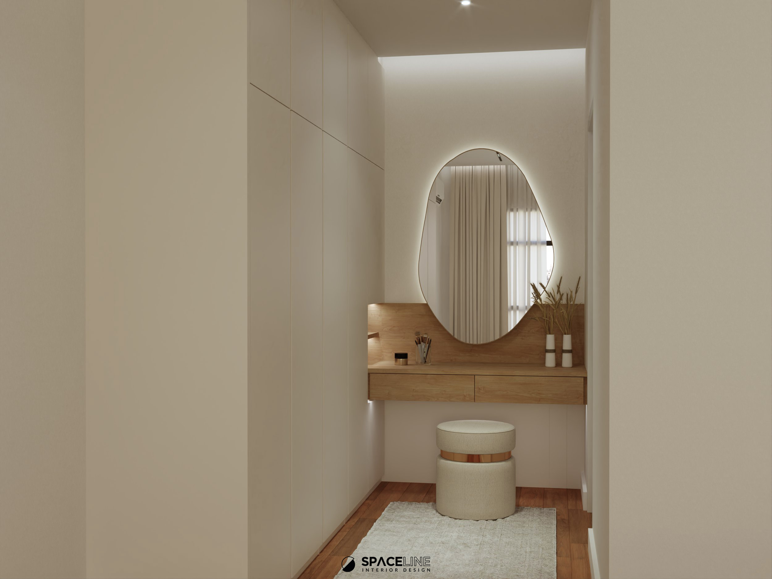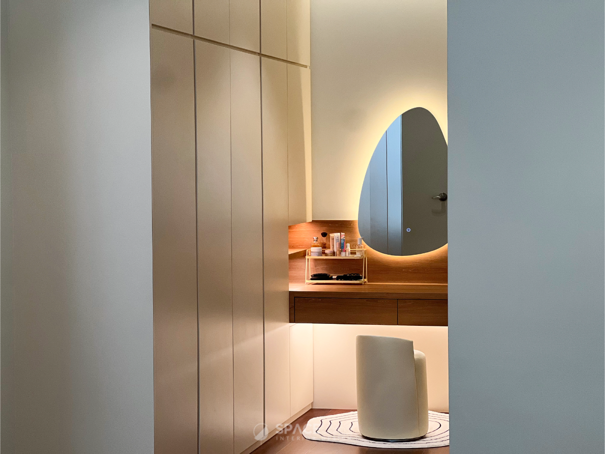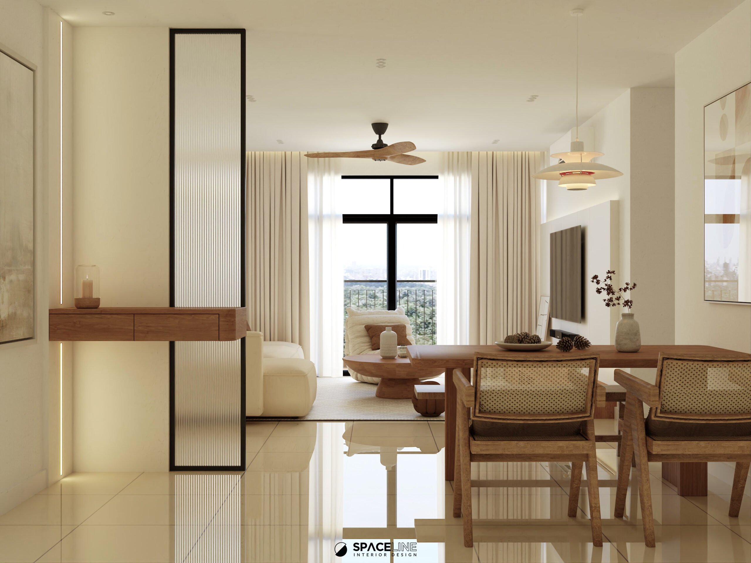 This condominium project at Molek Regency is designed to maximize comfort and visual warmth using a minimal aesthetic, strategic lighting, and a cohesive material palette that flows seamlessly between the main spaces.
