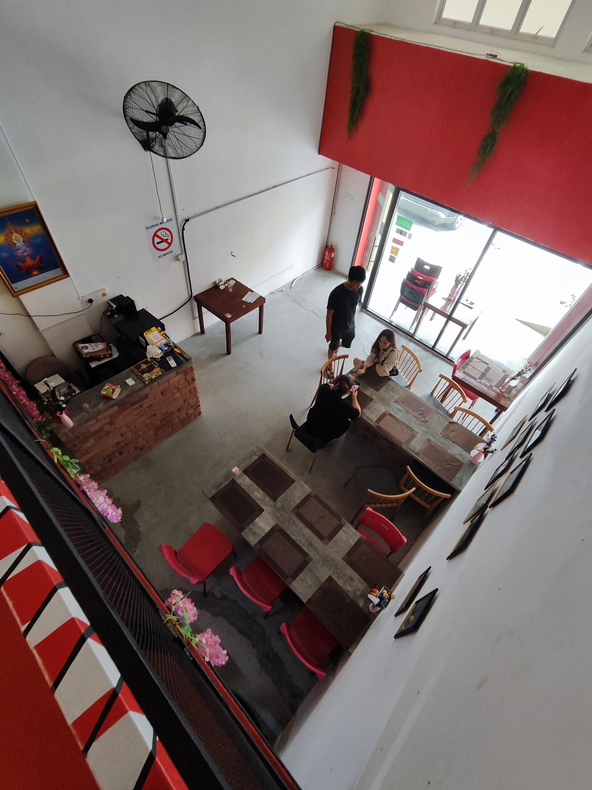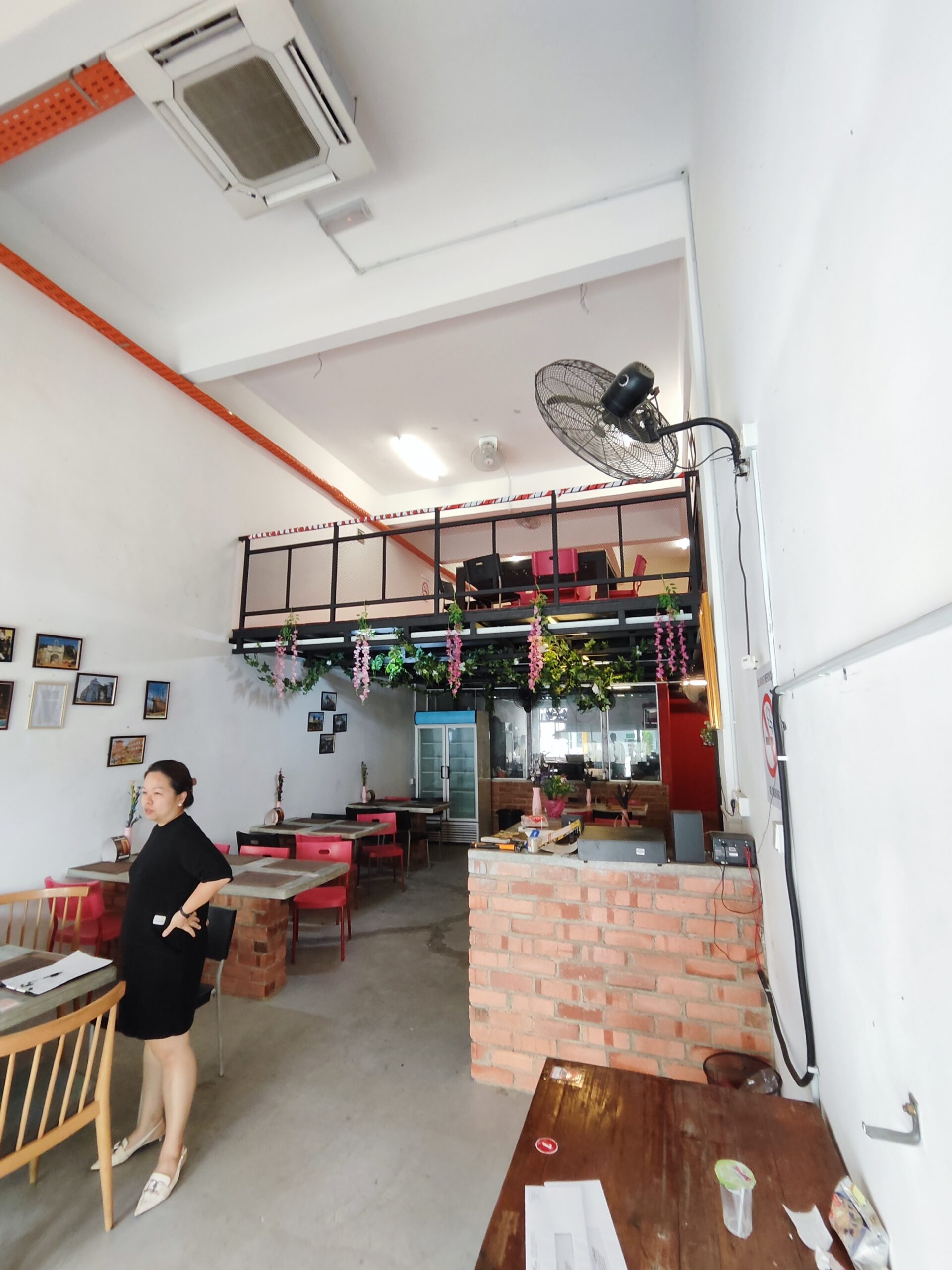 The premise is cleverly divided into two levels of dining spaces (ground and first floor mezzanine) to maximize customer capacity and offer options for private and social dining. The spaces are zoned according to dining table types and capacity.